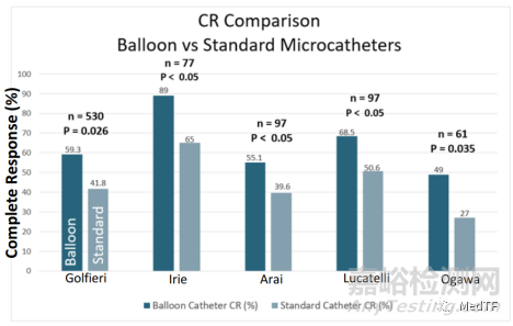 臨床研究證明,無論是C-TACE還是DEB-TACE,使用封堵球囊微導(dǎo)管后,手術(shù)效果都大大提升。從美國、日本和意大利近年來多個(gè)研究中心、近1000名臨床試驗(yàn)患者的研究結(jié)果表明,首次使用封堵球囊微導(dǎo)管完全緩解率是普通微導(dǎo)管的1.5倍。專家認(rèn)為,這可能預(yù)示著在5年生存率方面可能有50%以上的改善。