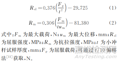 (1)由小沖桿試驗(yàn)得到的強(qiáng)度與拉伸試驗(yàn)得到的強(qiáng)度的相對(duì)誤差小于5.0%,說明小沖桿試驗(yàn)測(cè)定強(qiáng)度具有一定可靠性。