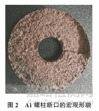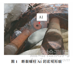 斷裂螺柱A1的宏觀形貌如圖1所示,可知斷裂位置為螺紋和光桿連接的變截面處,以及螺柱與閥體配合部分的第一螺紋處。