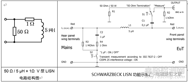 3)50 Ω / 5 µH + 1Ω V型LISN,適用于150kHz-108MHz頻率范圍。