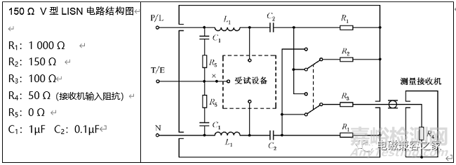 4)150 Ω V型LISN,適用于150kHz-30MHz頻率范圍。