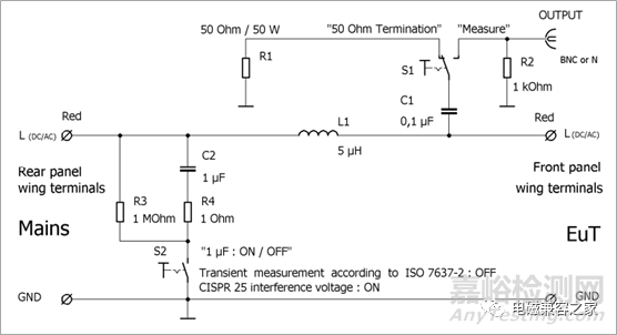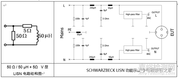 2)50 Ω / 50 µH V型LISN,適用于150kHz-30MHz頻率范圍。