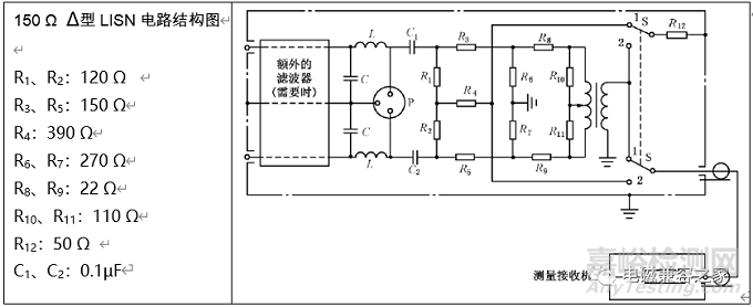 5)150 Ω Δ型LISN,適用于150kHz-30MHz頻率范圍。
