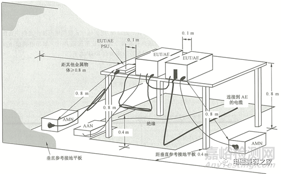 下圖是GB/T 9254.1中傳導(dǎo)干擾測(cè)試臺(tái)式設(shè)備EUT布置示例: