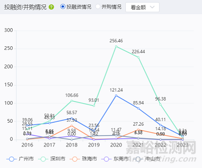 從投資并購情況看,從2016年至2023年,廣州市、深圳市、珠海市、東莞市、中山市的生物醫(yī)藥產(chǎn)業(yè)累計投融資金額分別為423.13億、863.38億、93.23億、33.86億、38.94億。