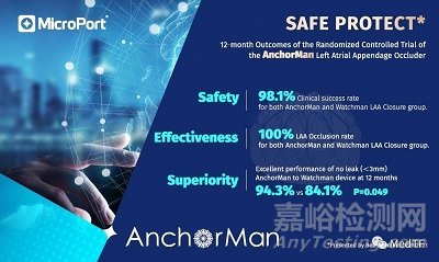 12個月臨床結果達到主要終點,全分析組人群的12個月臨床成功率分別為98.1%對98.1%,差異為-0.3%[95%CI,-3.9%至3.5%](Pnon-inferiority=0.0004),AnchorMan與WATCHMAN的臨床成功率結果之間沒有顯著差異;
