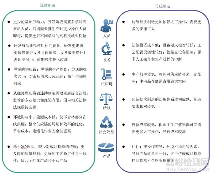 圖1 連續(xù)制造與傳統(tǒng)制造模式對比