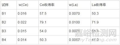 表3 方案B試樣中Ce、La含量和收得率