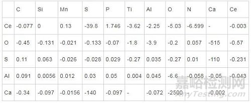 式中:ai為組元i的活度;w(i)為組元i的質(zhì)量分?jǐn)?shù);eij為一階相互作用系數(shù);i,j為組元i和j。