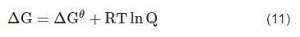 式中:?G為Gibbs自由能,J;R為氣體常數(shù),8.314 J/(mol·K);Q為化學(xué)反應(yīng)的產(chǎn)物與反應(yīng)物的活度熵。