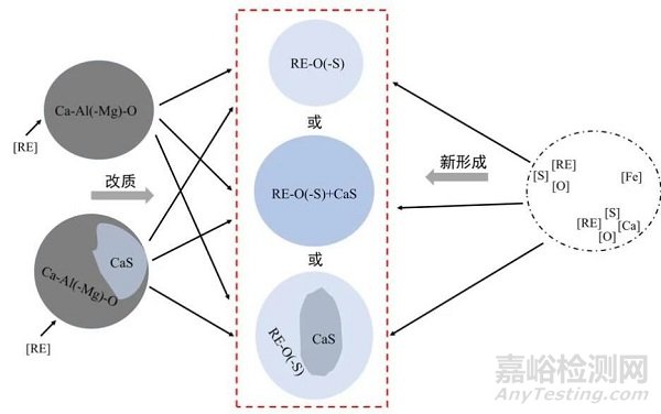 Fig. 8 Evolution process of inclusions in steel with the addition of rare earth