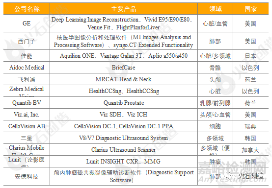 表1:國外AI醫(yī)療影像龍頭企業(yè)產(chǎn)品情況