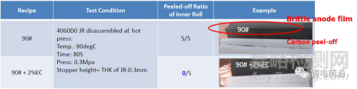 (2)對(duì)于水性的 PAA 體系,我們采用的是加入 EC 增塑的辦法,對(duì)改善極片開裂有明顯的幫助: