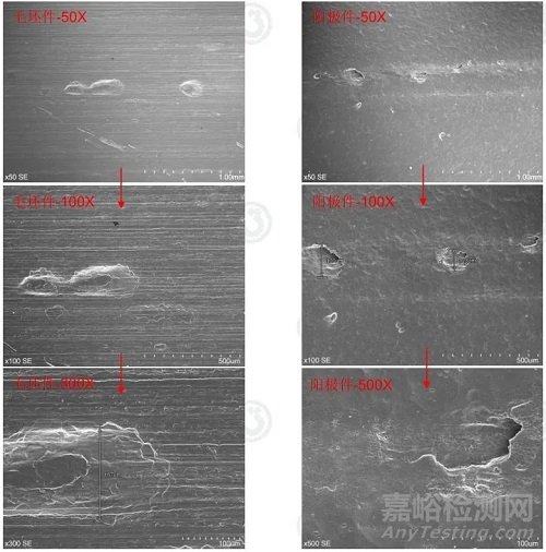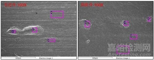 為找到造成缺陷之真因,實(shí)驗(yàn)室對(duì)毛坯件及陽(yáng)極件的缺陷區(qū)域進(jìn)行了分析。