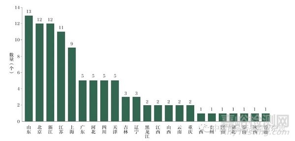 圖1 2020 年中國醫(yī)藥百強(qiáng)企業(yè)各地?cái)?shù)量分布圖