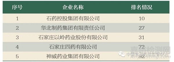 表1 2020 年全國生物醫(yī)藥百強(qiáng)企業(yè)(河北)排名情況