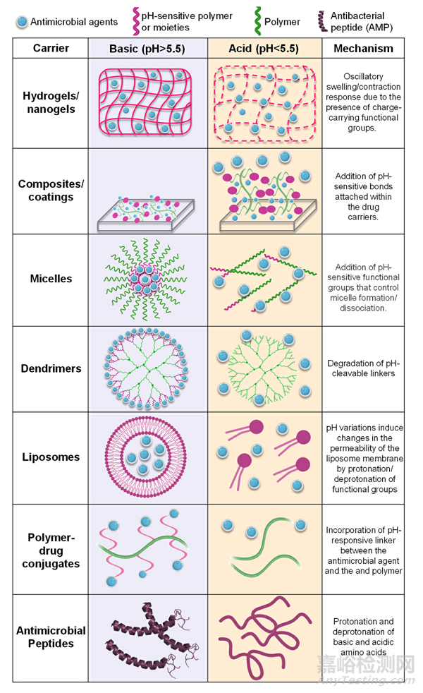 pH響應型抗菌肽最近為開發(fā)具有更高細菌選擇性的口服抗菌技術開辟了新的機會。一種創(chuàng)新的方法是通過將AMPs封裝到這些納米載體中,將AMPs的抗菌能力和pH響應納米載體的可調(diào)諧性結合起來。AMPs的封裝和遞送是保護肽免受酶降解的一種很有前途的策略。