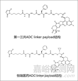 首先從研發(fā)速度來說,作為國內(nèi)的醫(yī)藥龍頭企業(yè)恒瑞醫(yī)藥,已經(jīng)布局了豐富的ADC管線,并且憑借其“Fast follow”的優(yōu)勢,已有多個DXd類似的ADC藥物在研。根據(jù)其公布的專利來看,恒瑞開發(fā)的ADC藥物與第一三共DXd系列的ADC藥物有著幾乎一致的linker以及paylaod,區(qū)別僅在于在依喜替康類似物酰胺α位引入一個環(huán)丙基。憑借微小的改動,成功避開專利,并且保留藥效。