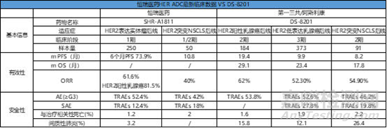 目前恒瑞已有6款A(yù)DC產(chǎn)品獲批臨床,包括HER2、Trop2、Claudin18.2和HER3等競爭比較激烈的靶點。其中進(jìn)展最快的為針對HER2陽性乳腺癌的SHR-A1811,2020.06處于臨床前研究,2020.10進(jìn)入臨床I期,2021.06進(jìn)入臨床II期,2022.08 SHR-A1811進(jìn)入臨床III期。不得不說,恒瑞速度不愧為中國創(chuàng)新藥一哥。據(jù)AACR發(fā)布的臨床數(shù)據(jù)顯示,無論是在安全性還是有效性方面,SHR-A1811表現(xiàn)都十分亮眼,有效性方面:總ORR為61.6%,HER2陽性的乳腺癌患者ORR為81.5%,在HER2突變NSCLS后線治療,ORR為40%;DS-8201,針對HER2陽性的乳腺癌患者ORR為62%,HER2低表達(dá)的乳腺癌患者ORR為52.3%, HER2突變NSCLS后線治療,ORR為54.9%。尤其是在安全性問題上,DS-8201所引發(fā)的間質(zhì)性肺炎一直備受關(guān)注,而SHR-A1811在間質(zhì)性肺炎發(fā)生率上表現(xiàn)出較為明顯的優(yōu)勢,相比于DS-8201百分之十幾至二十幾的間質(zhì)性肺炎發(fā)生率,SHR-A1811在間質(zhì)性肺炎發(fā)生率為3.2%。SHR-A1811已開展針對多種適應(yīng)癥的臨床研究,包括乳腺癌,非小細(xì)胞肺癌和胃癌等。從恒瑞ADC的研發(fā)管線來看,值得關(guān)注的,SHR-A1403,一款靶向c-MET的ADC藥物,也是國內(nèi)首個進(jìn)入臨床階段的此靶點的ADC藥物,目前正處于臨床I期??梢哉f,恒瑞對ADC藥物的推進(jìn)速度是相當(dāng)突出的,SHR-A1811成為下一個DS-8201也不無可能。