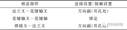表1 傳動(dòng)軸各部位連接和接觸行為