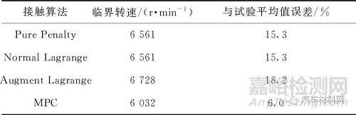 表2 不同接觸算法的計(jì)算結(jié)果