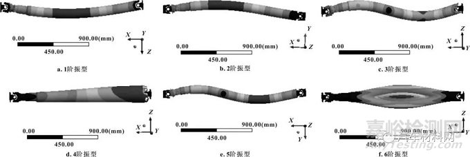 圖3 傳動(dòng)軸前6階模態(tài)振型