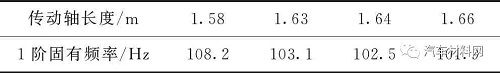 表3 不同長(zhǎng)度傳動(dòng)軸1階固有頻率