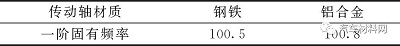 表4 不同材質(zhì)傳動(dòng)軸1階固有頻率 單位:Hz
