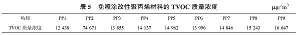 表5為免噴涂改性聚丙烯的TVOC測試結果