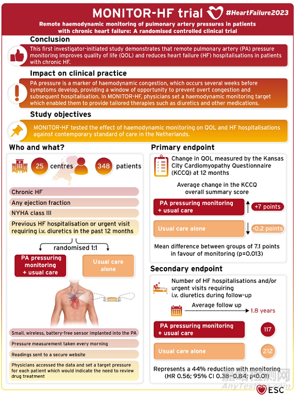 3. Jasper J. Brugts, Sumant P. Radhoe, Pascal R.D.Clephas, et al. Remote haemodynamic monitoring of pulmonary artery pressures in patients with chronic heart failure (MONITOR-HF):a randomized clinical trial. Lancet. Published Online May 20, 2023. https://doi.org/10.1016/S0140-6736(23)00923-6.