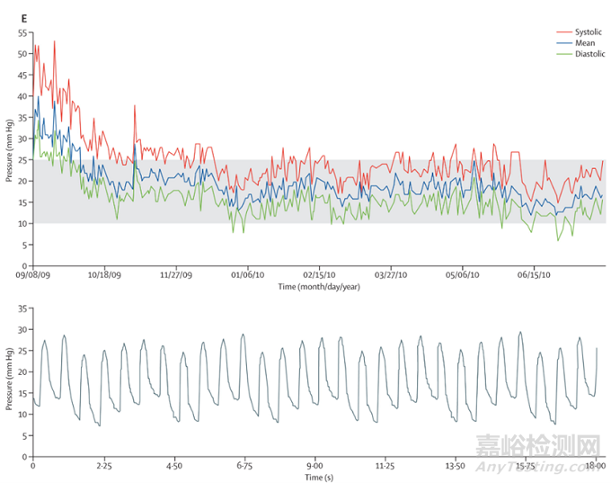 圖8 CardioMEMS傳輸?shù)男畔▔毫厔莺蛦蝹€肺動脈壓力波形