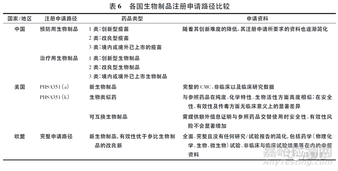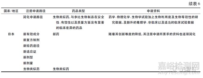 美國和歐盟的生物制品注冊分類按照“創(chuàng)新”和“仿制”(生物類似藥) 的原則,將注冊申請路徑分為完整申請路徑和簡化申請路徑,日本按照藥品的創(chuàng)新程度以及申報資料的完整程度將注冊分類分成1~10類,見表6。