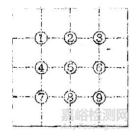 取本品2片,除去包衣,研細,稱取細粉0.1g,加水10ml使溶解,離心,棄去上清液,沉淀加水2ml使混懸,吸取混懸液1滴,置于載玻片上,加水合氯醛1滴,加熱透化,置顯微鏡100倍下,按下圖選取9個檢查點檢視,視野中除三七的植物組織特征外,不得檢出其它植物組織。