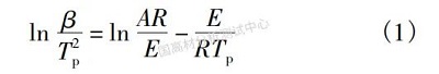 (1)式中:Tp是DTG曲線中微峰溫度(K),β是升溫速率(K/min),E是表觀活化能(J·mol-1),R是氣體常數(shù)(約為8.314,單位J·mol-1·K-1),A是指前因子(min-1)。