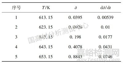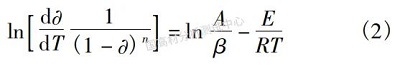 (2)式中:為分解率,T為熱力學(xué)溫度(K),A為指前因子(min-1),β是升溫速率(K/min),E為活化能(J·mol-1),R是氣體常數(shù)(約為8.314,單位