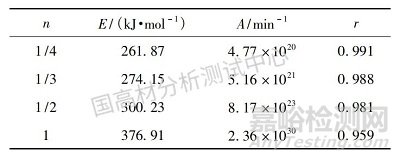 通過計(jì)算可以得到表觀活化能E約304.48kJ·mol-1,指前因子A約為2.4×1022min-1 。
