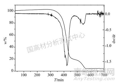 圖4升溫速率5K/min時(shí)PET的TG-DTG曲線
