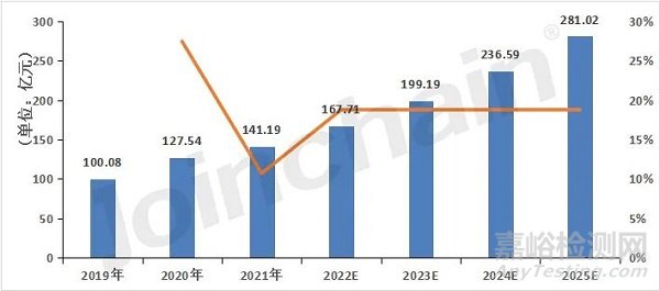 圖1 2019年至2025E中國醫(yī)用內(nèi)窺鏡市場規(guī)模