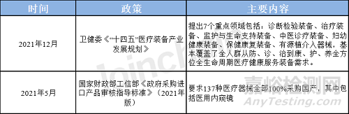 “十四五”規(guī)劃以來,國家衛(wèi)健委多次出臺相關(guān)政策法規(guī),大力支持內(nèi)窺鏡等高端醫(yī)療設(shè)備發(fā)展,國家財政部、工信部在2021年5月明確要求137種設(shè)備全部采購國產(chǎn),各類醫(yī)用內(nèi)窺鏡最低要求50%以上采購國產(chǎn),其中3D腹腔鏡、膽道鏡、椎間孔鏡要求100%國產(chǎn)。