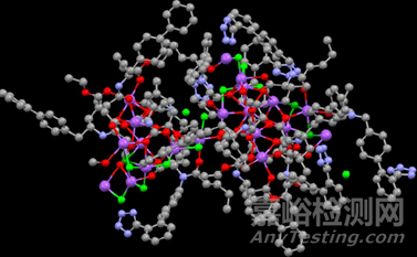 圖4 LCZ696單晶:C-灰色,N-淺藍,O-紅色,Na-紫色,水分子-綠色(來源:文獻5)