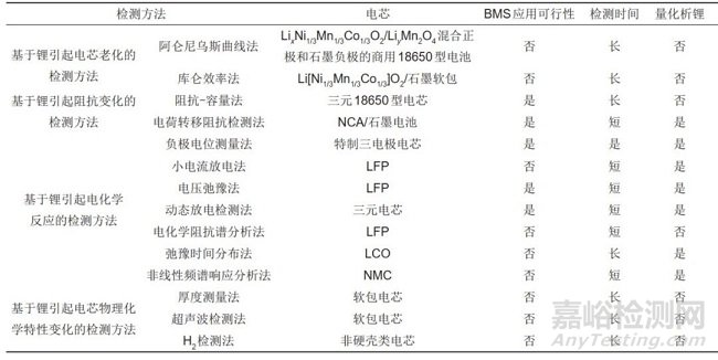 三是基于鋰引起電化學(xué)反應(yīng)的檢測方法。例如:負(fù)極電位測量法、小電流放電法、電壓弛豫法、電化學(xué)阻抗譜(EIS)法、非線性頻譜響應(yīng)分析法和弛豫時間分布法等。