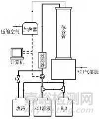 其中氣溶膠發(fā)生裝置在本文中指如圖2所示的大顆粒KCl氣溶膠發(fā)生裝置,在該裝置中,KCl溶液經(jīng)霧化噴頭發(fā)生大顆粒KCl氣溶膠,氣溶膠與加熱至100℃的潔凈壓縮空氣充分混合,進(jìn)入風(fēng)管系統(tǒng)。
