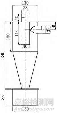 圖3 旋風(fēng)分離器結(jié)構(gòu)尺寸(單位:mm)