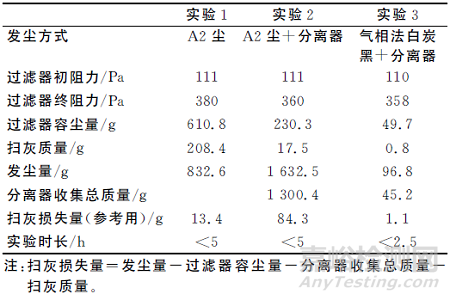 3)發(fā)塵結(jié)束后,保持系統(tǒng)風(fēng)量不變,待系統(tǒng)穩(wěn)定后記錄過濾器阻力,拆卸分離器灰斗并稱重,求得單次灰斗增重。重新安裝灰斗。