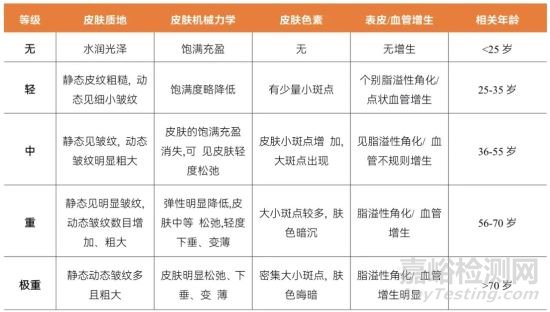 ▲ 皮膚衰老量表 (來(lái)源:人體皮膚衰老評(píng)價(jià)標(biāo)準(zhǔn),蛋殼研究院)