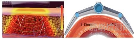 ▲ 射頻溶脂產(chǎn)品的作用機(jī)制示意圖 (來(lái)源:左為接觸式 Cutera truSculpt3D,右為非接觸式 BTL VANQUISH ME™ )