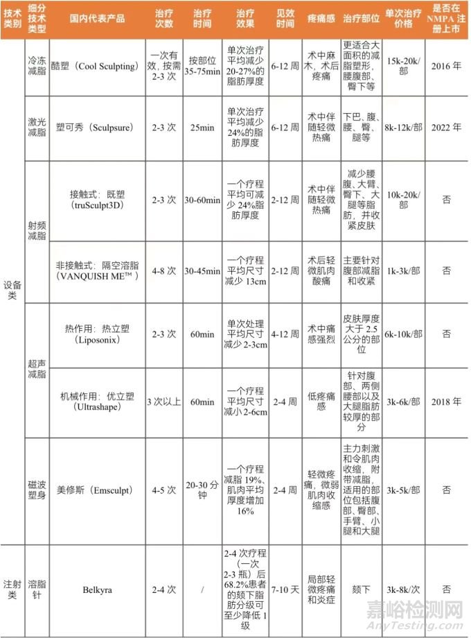 ▲ 減脂塑形領(lǐng)域非手術(shù)類(lèi)技術(shù)對(duì)比 (來(lái)源:公開(kāi)資料,蛋殼研究院)