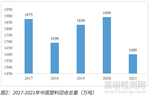據(jù)統(tǒng)計,2021年中國市場塑料回收及再生料的總量約為1600萬噸,相較之前幾年出現(xiàn)了一個相對較大的降幅(圖2)。