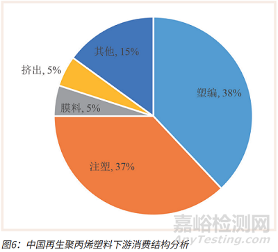 近三年再生聚丙烯下游所占比重未出現(xiàn)明顯變化。其中塑編仍是再生聚丙烯的最大下游,占比38%,塑編企業(yè)開工負(fù)荷率基本維持在50%-70%,注塑領(lǐng)域占比則由38%下降至37%,緊跟塑編牢牢占據(jù)第二的位置,其對顆粒及破碎質(zhì)量要求相對降低,用途更加廣泛,主要應(yīng)用于臉盆、果筐等附加值較低的產(chǎn)品。除此之外,聚丙烯改性行業(yè)發(fā)展情況較好。各種大型企業(yè)越來越重視對再生聚丙烯材料的使用,很多企業(yè)在采購生產(chǎn)原料時對原料供應(yīng)商提出了添加一定比例再生塑料用作改性的要求,因此下游塑料改性行業(yè)發(fā)展較為迅速,再生聚丙烯下游需求的占比增多(圖6)。
