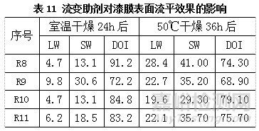 2) 為得到最佳的漆膜平整度,基材潤濕劑和流平劑的測試過程中除了關(guān)注對漆膜流平性的影響外,也要關(guān)注對涂料流動性的影響。